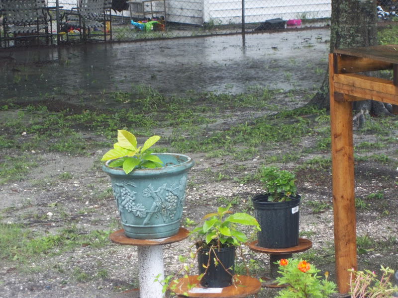 Friday night brought us the news on Debby, a tropical storm that sat off the Gulf of Mexico. Bringing Florida lots of flooding and rain. Where we live is on the outter limits of Tampa, so we did not have to suffer through the ever growing Gulf and drowning road ways. Thank goodness. We did however, have our very own small ponds on the property.