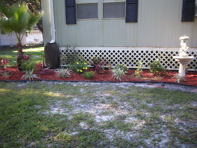 This picture just doesn't seem to do justice to the area. Once we had it to this point. My sister, and I moved plants into the area. Trying to pin point where everything would go, and hoping there would be room to purchase more.